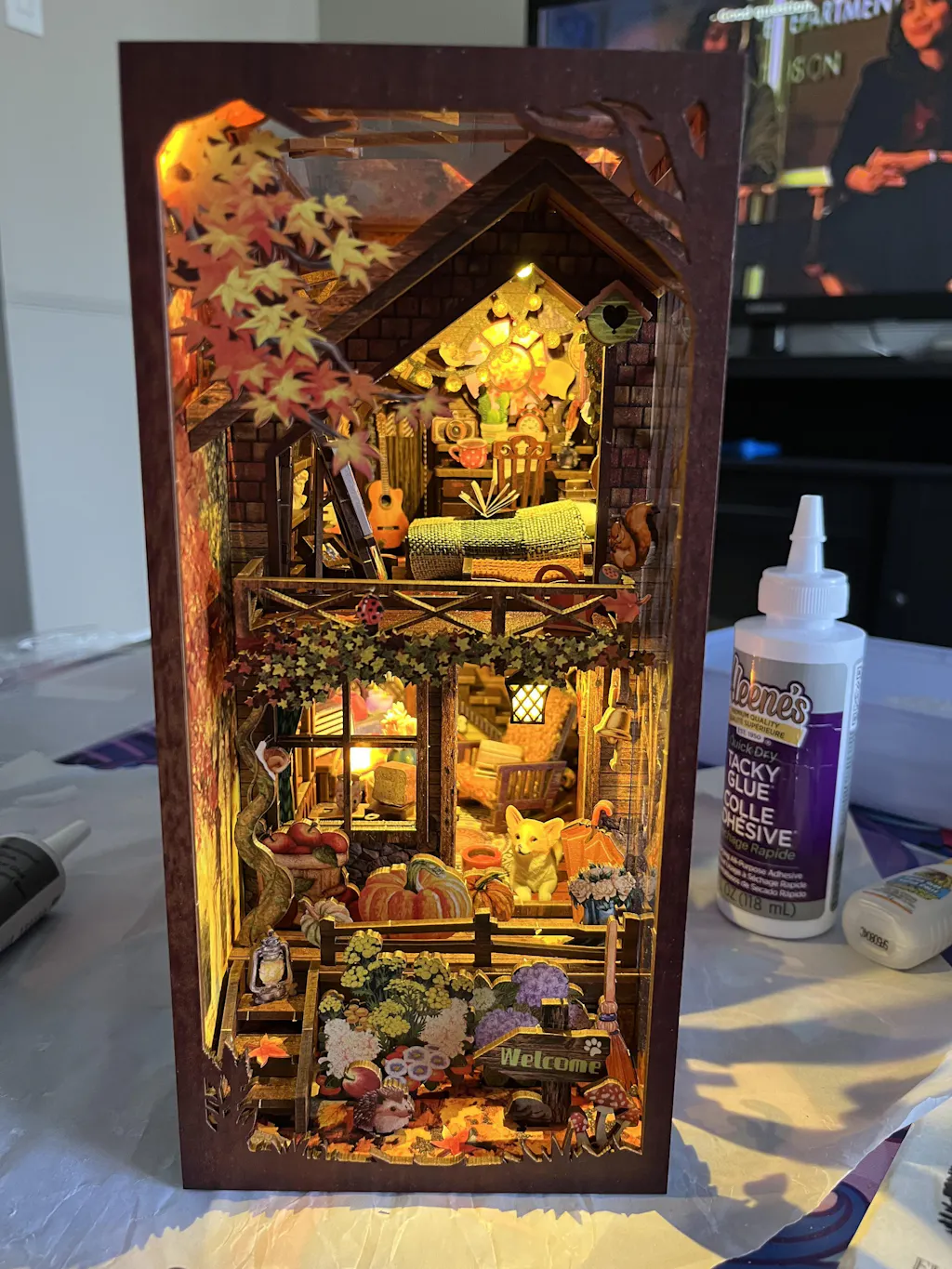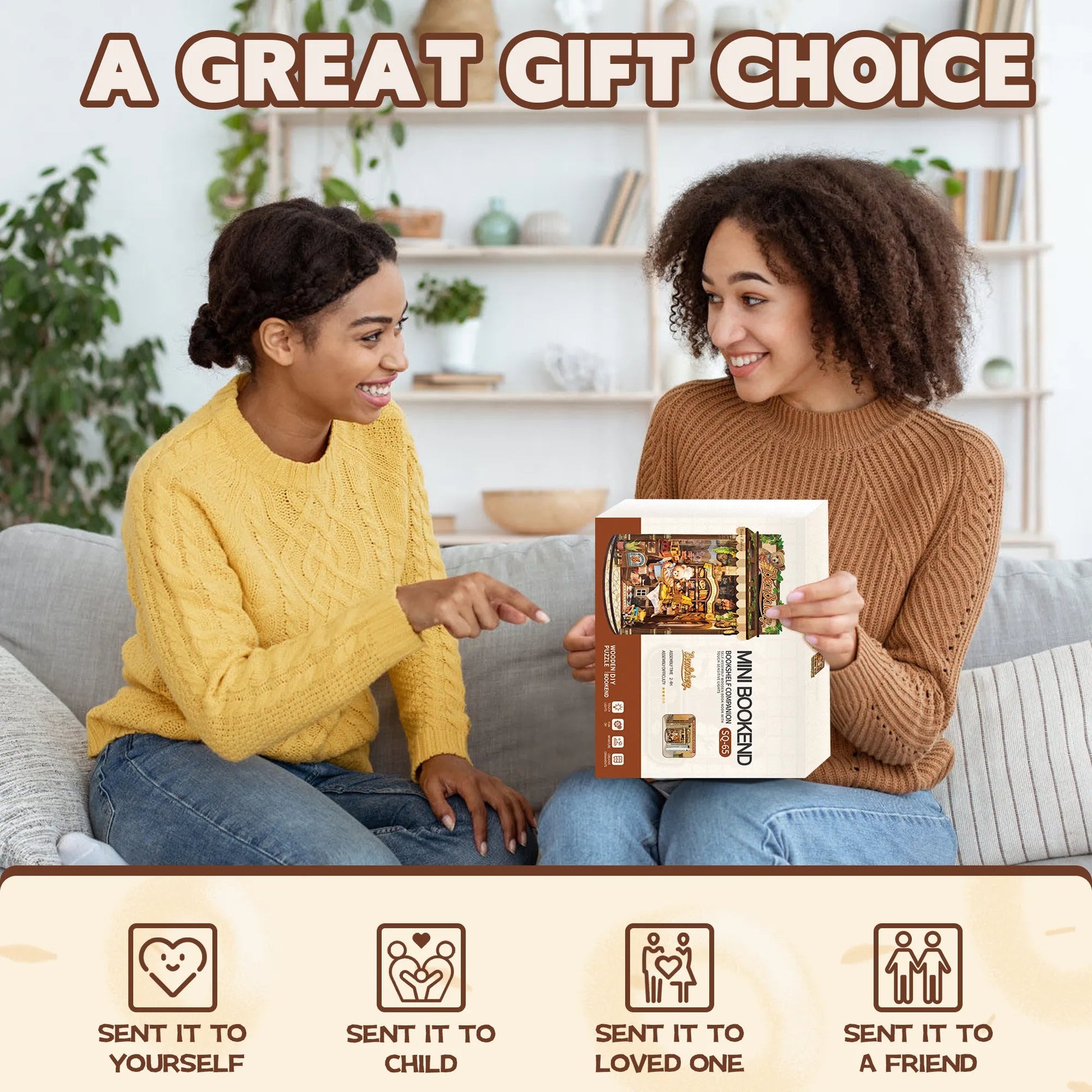 No glue mess or stress—pieces fit together easily for a fun relaxing build. Soft LED lights create a gentle cozy glow making your nook feel like a real late-night bakery nestled between your books.
